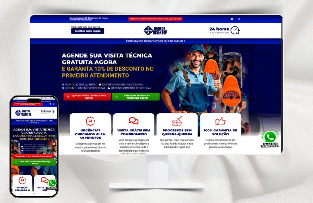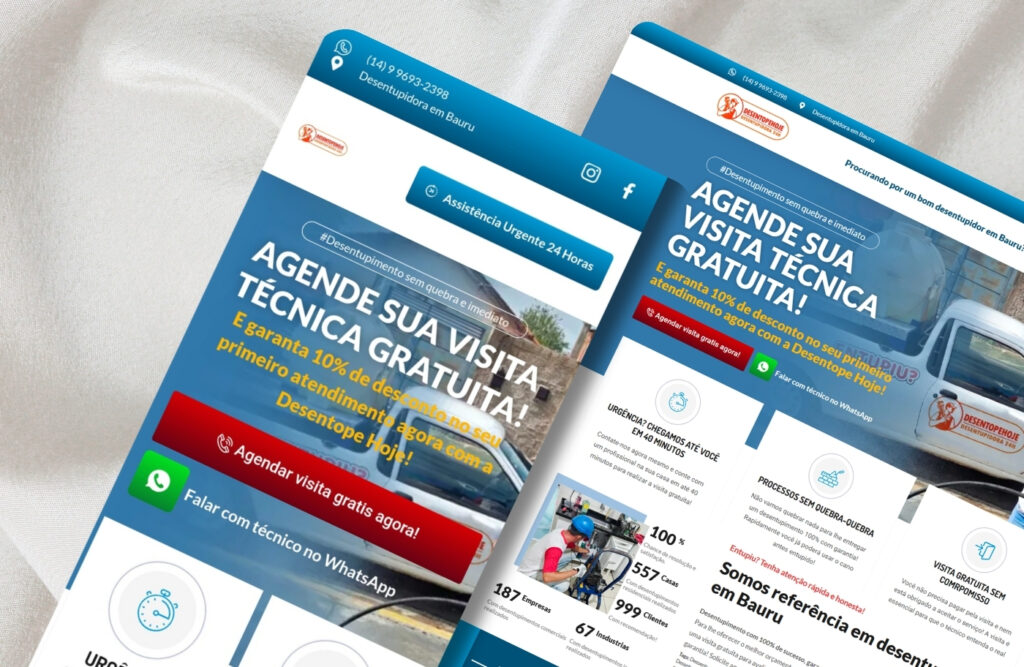 Nossos sites são pensados pra conversão. Nossos anúncios são otimizados pra atrair quem realmente procura por “desentupidora perto de mim”.